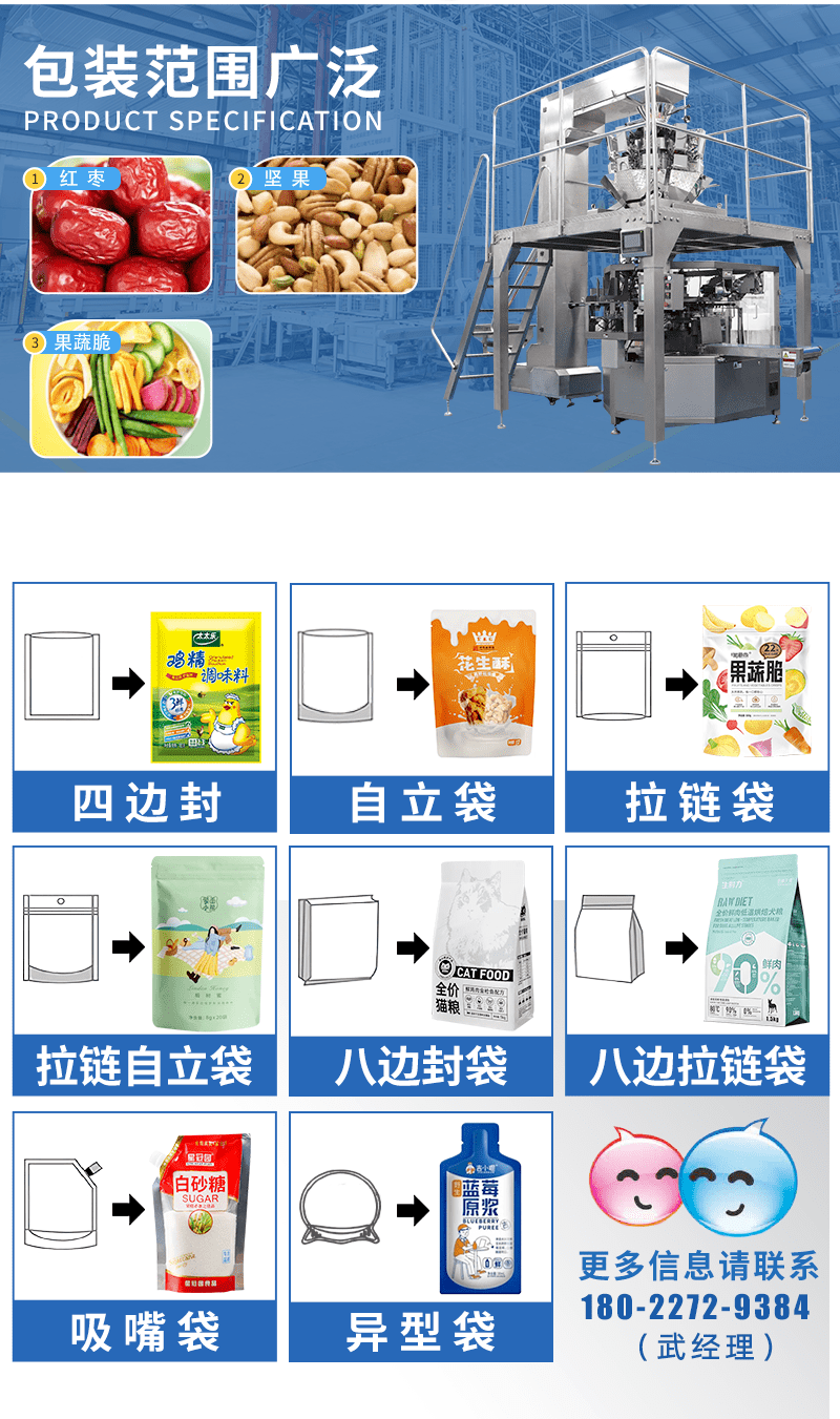 佛山市松盛包裝機械有限公司專業(yè)生產(chǎn)給袋式包裝機,枕式熱收縮膜包裝機,粉劑包裝機,顆粒包裝機,醬料液體包裝機,全自動計量稱重填充包裝,廣泛應(yīng)用于食品包裝、日化包裝、醫(yī)藥包裝、工藝品包裝機、五金包裝、玩具包裝、農(nóng)業(yè)化工等塊狀、條狀、顆粒、液體、粉末產(chǎn)品的全自動包裝機械;集研發(fā)、設(shè)計、生產(chǎn)、銷售為一體的包裝機械自動化設(shè)備廠家。