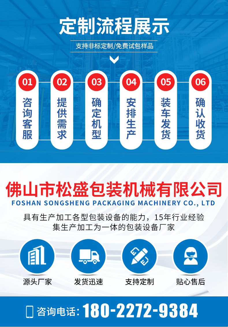 佛山市松盛包裝機械有限公司專業生產給袋式包裝機,枕式熱收縮膜包裝機,粉劑包裝機,顆粒包裝機,醬料液體包裝機,全自動計量稱重填充包裝,廣泛應用于食品包裝、日化包裝、醫藥包裝、工藝品包裝機、五金包裝、玩具包裝、農業化工等塊狀、條狀、顆粒、液體、粉末產品的全自動包裝機械;集研發、設計、生產、銷售為一體的包裝機械自動化設備廠家。