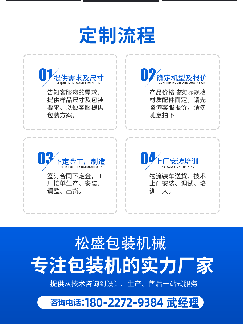 佛山市松盛包裝機械有限公司專業生產給袋式包裝機,枕式熱收縮膜包裝機,粉劑包裝機,顆粒包裝機,醬料液體包裝機,餐具用品四件套包裝機,全自動計量稱重填充包裝,廣泛應用于食品包裝、日化包裝、醫藥包裝、工藝品包裝機、五金包裝、玩具包裝、農業化工等塊狀、條狀、顆粒、液體、粉末產品的全自動包裝機械;集研發、設計、生產、銷售為一體的包裝機械自動化設備廠家。